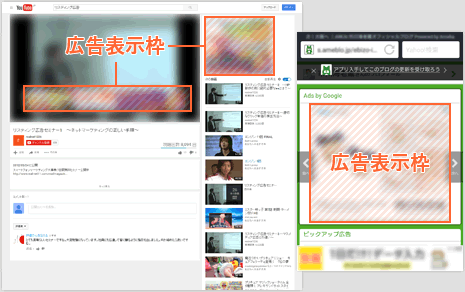 Googleが提供するディスプレイ広告で、Googleの検索結果だけでなく、様々なGoogle関連サイト(GmailやYouTube等)と、数百万のGoogleのパートナーサイトに配信する広告サービスです。